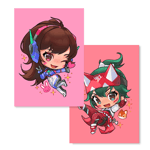 Dva and Kiriko Chibi Keychains, Stickers and Mini Art Prints